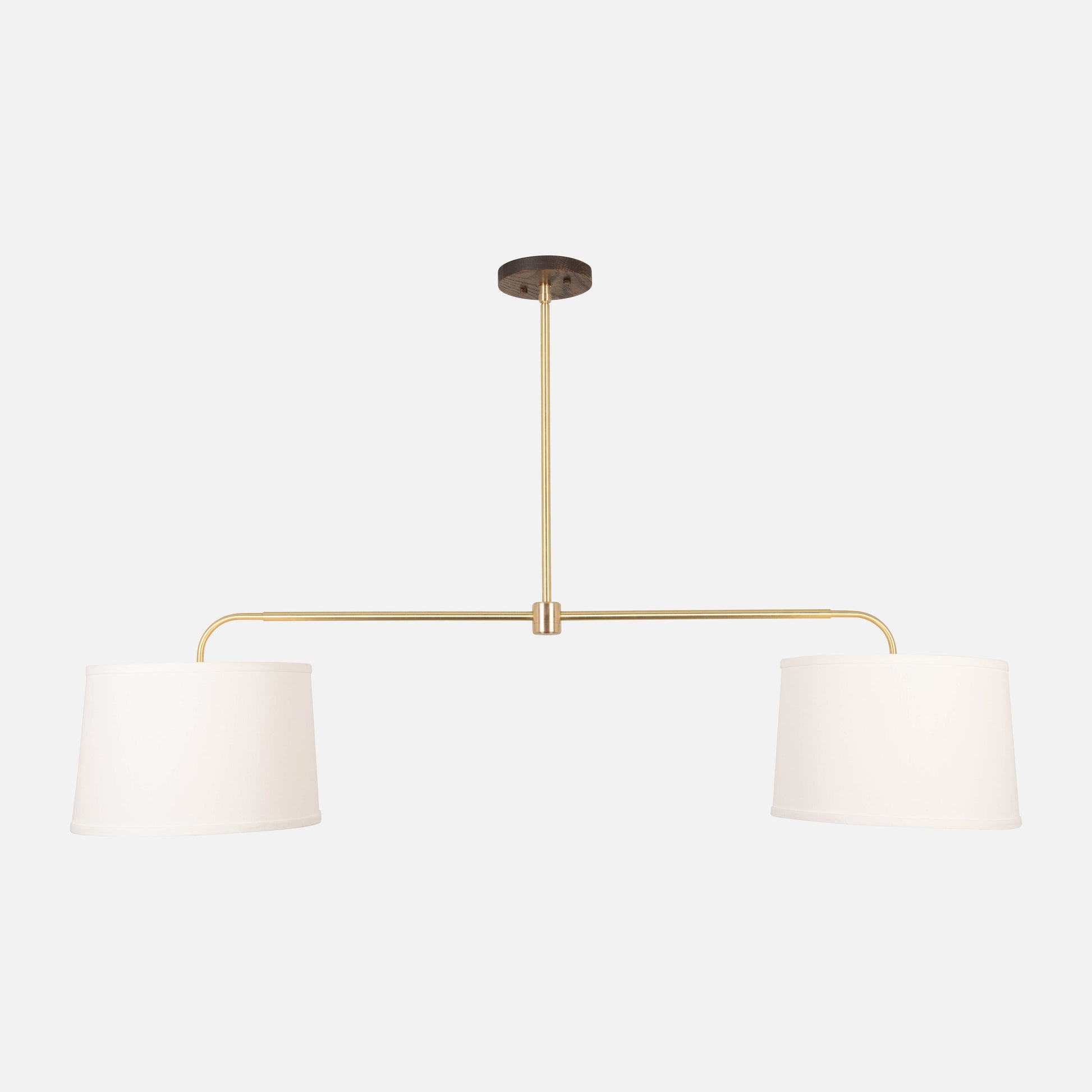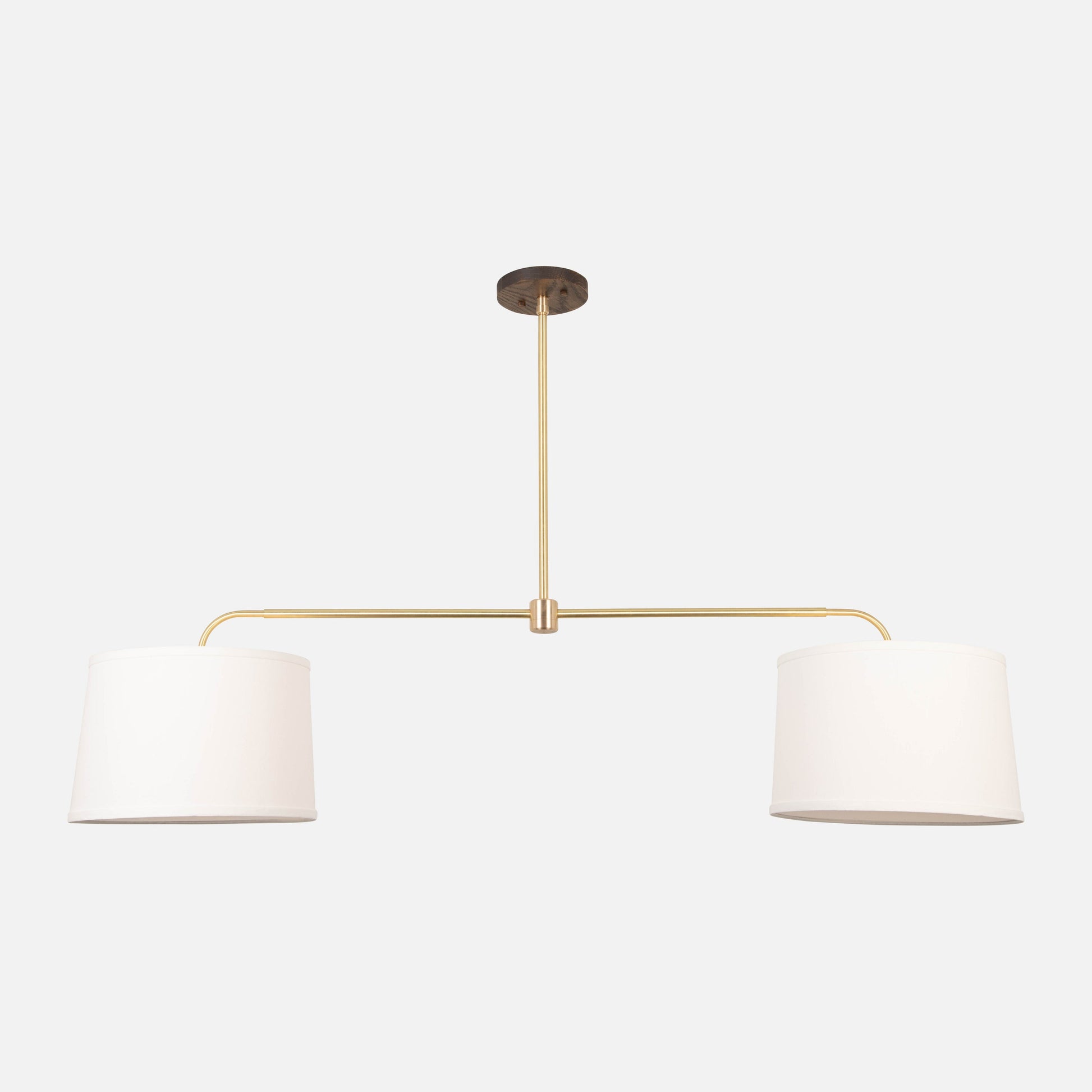 Featuring a duo of crisp linen shades, the Charlotte Double Pendant is the perfect option for a space that needs bright and diffused light. It's linear configuration makes it perfect for many applications like dining rooms and kitchens.