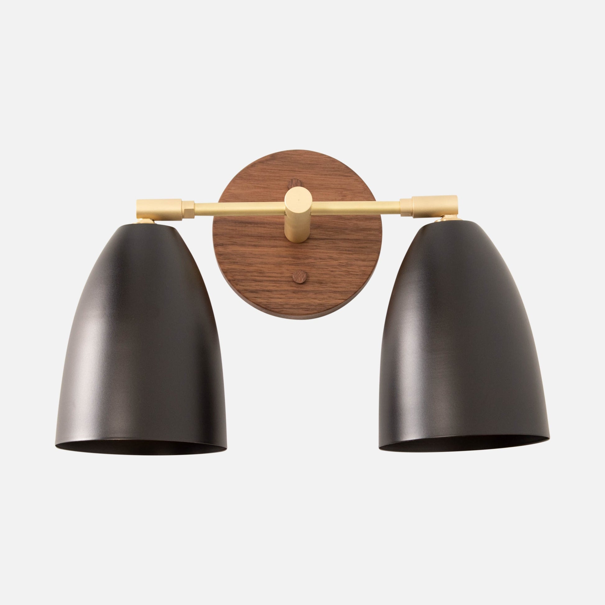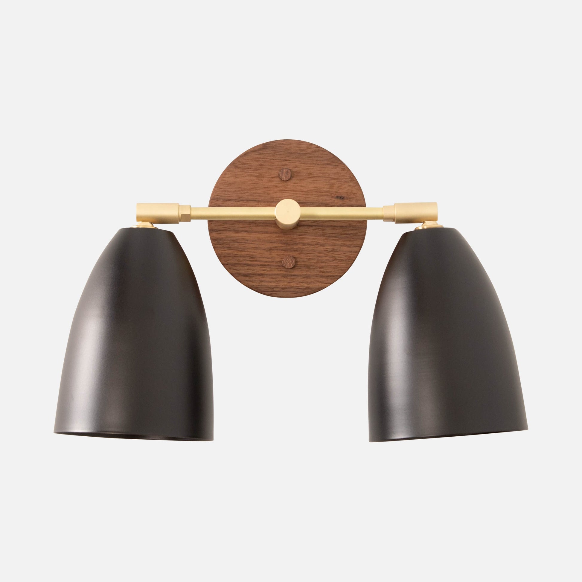 This stylish double wall sconce features a pair of modern cone shades with functional swivels and a classic silhouette.