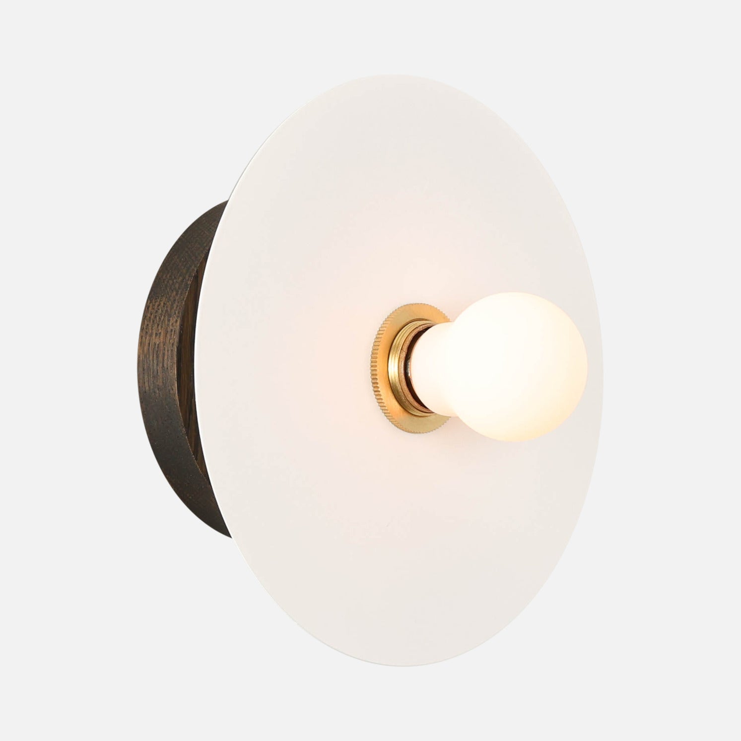 Charcoal Oak, Satin White Shade, Classic Brass Accent |