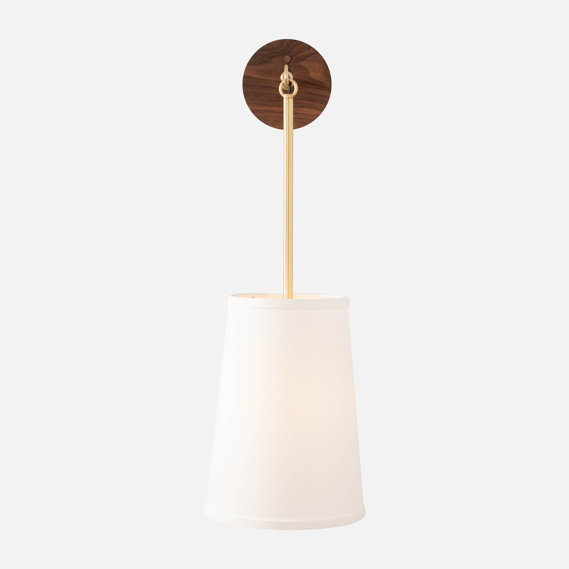 The Katie Sconce features a long drop and streamlined silhouette making it a stylish addition to any space. Its' oversize linen shade produces bright yet soft, diffused light.