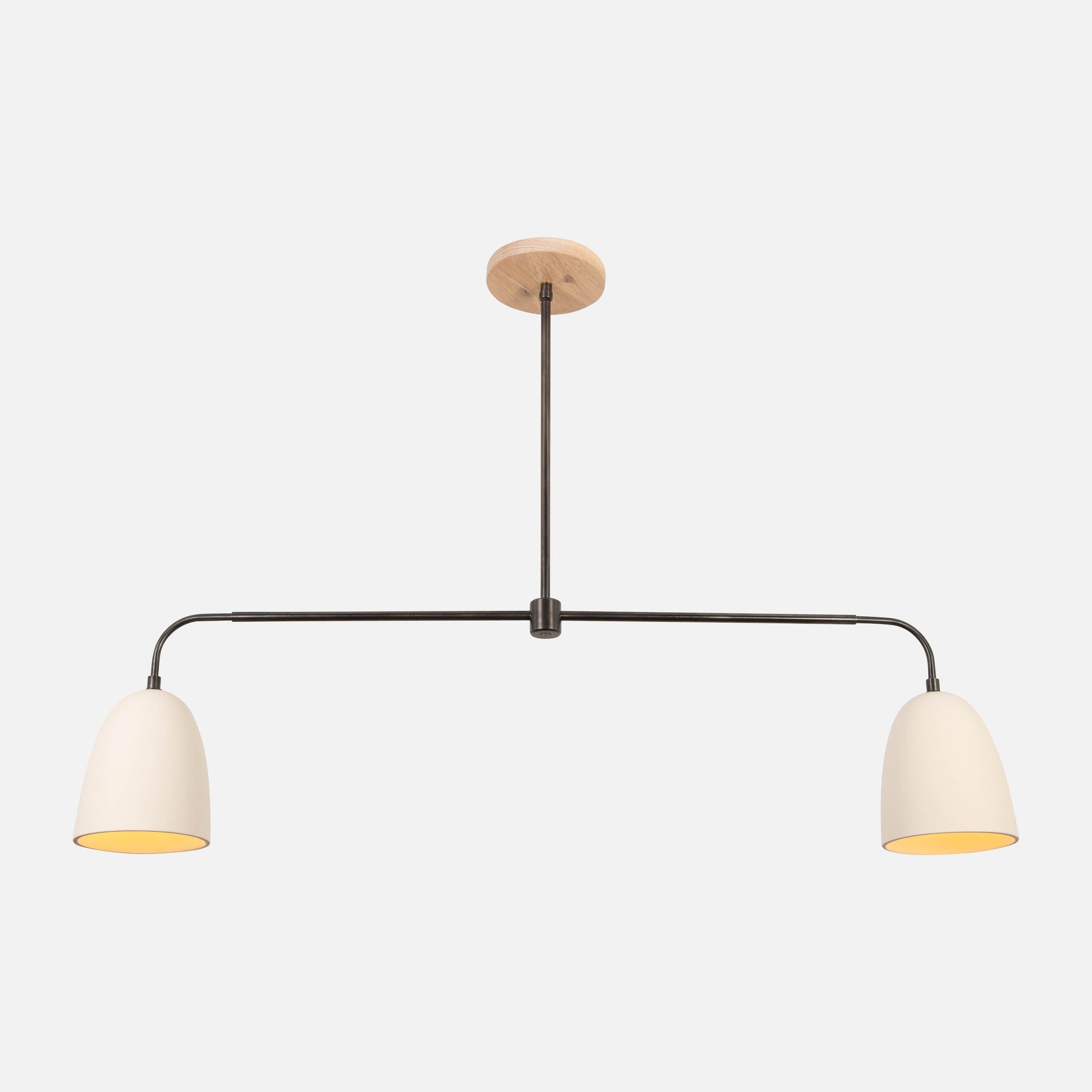 This double pendant features 2 porcelain shades, modern metal accents and a signature hardwood canopy. Named after a local Carolinian tree, the Leyland's bold porcelain shades and wooden canopy are fittingly made in the Carolinas.