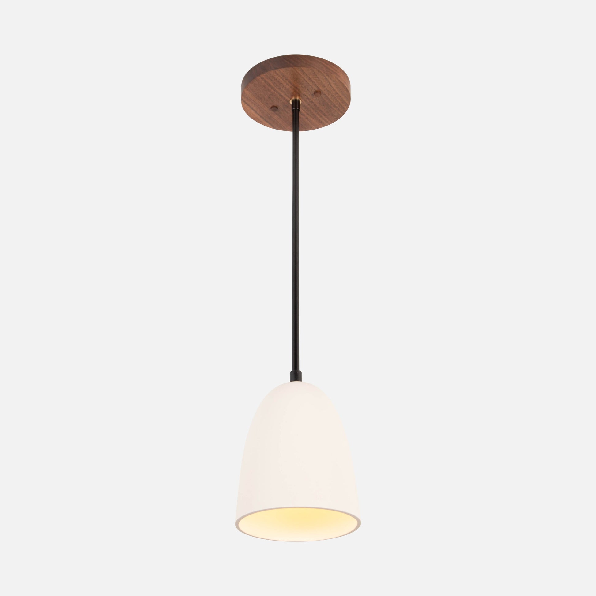 This pendant features a porcelain shade, modern metal accents and our signature hardwood canopy. Named after a local Carolinian tree, the Leyland's bold porcelain shade and canopy are fittingly made in the Carolinas.