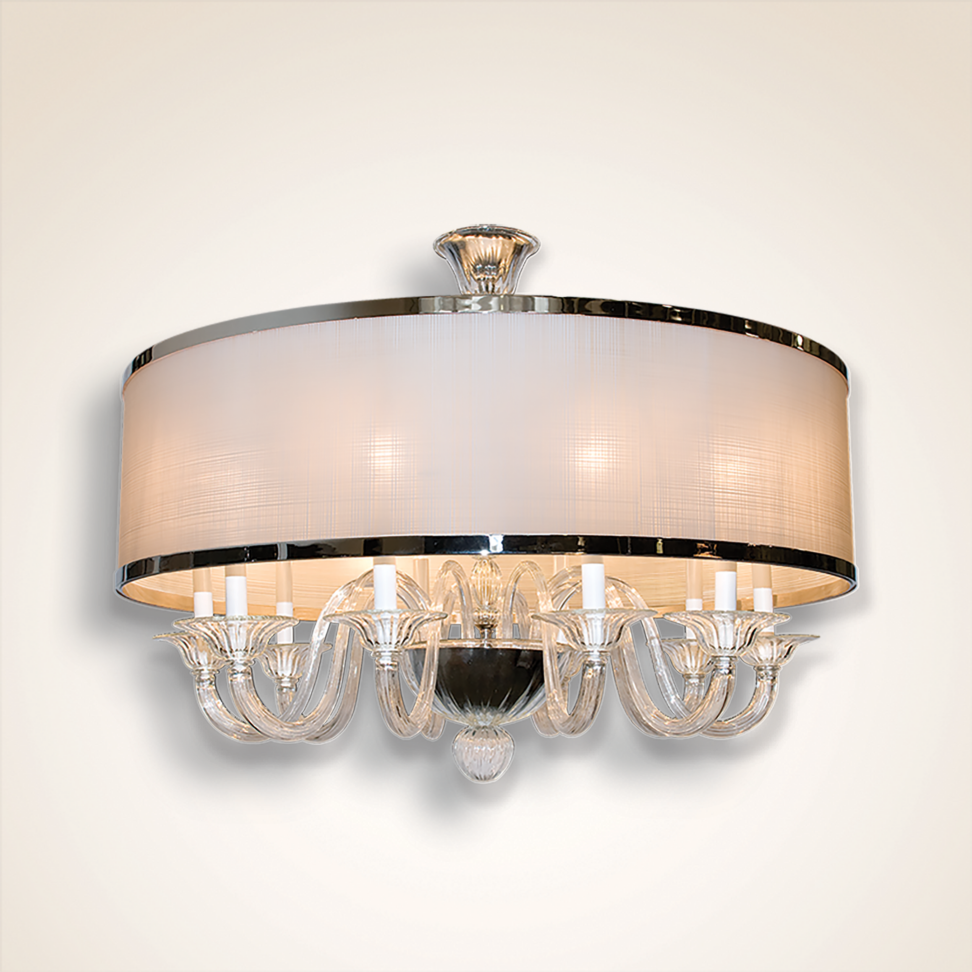 FINISH Plated Polished Nickel with Clear Murano Glass and Faux Linen Acrylic Shade