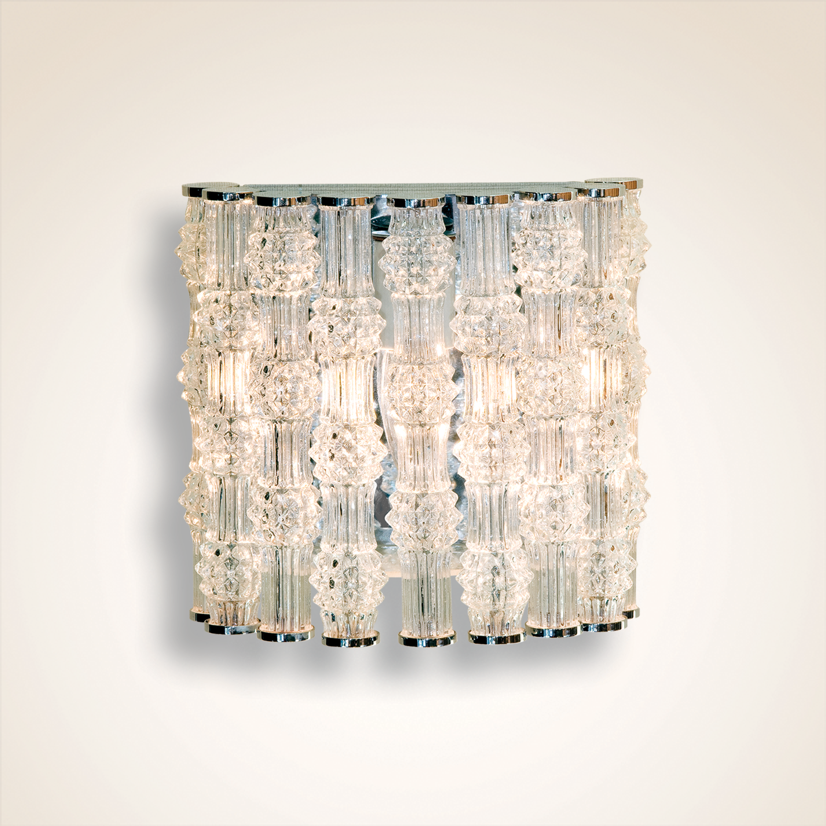 FINISH Clear Textured Glass Rods with Polished Nickel