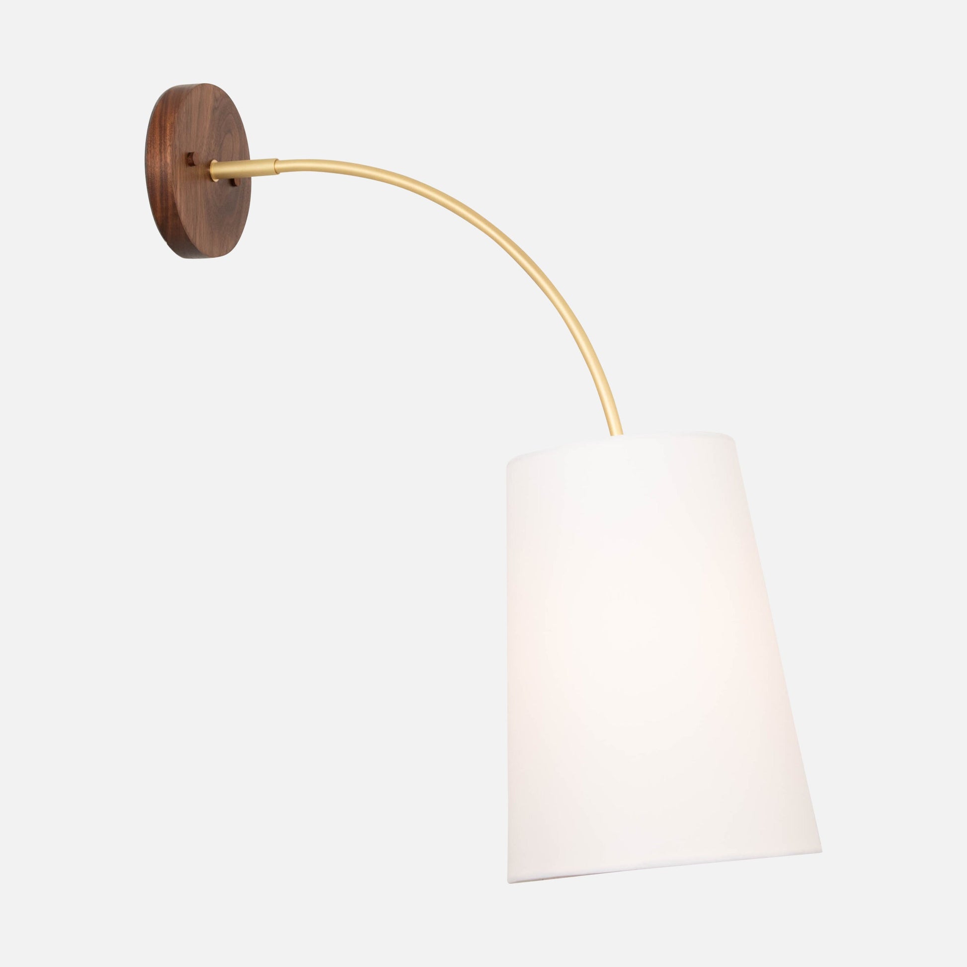 This sconce features a gracefully arcing arm, American made linen shade and our signature hardwood canopy. Named after a Carolinian waterfall, the Linville Sconce is fittingly built to order in our studio in the Carolinas.