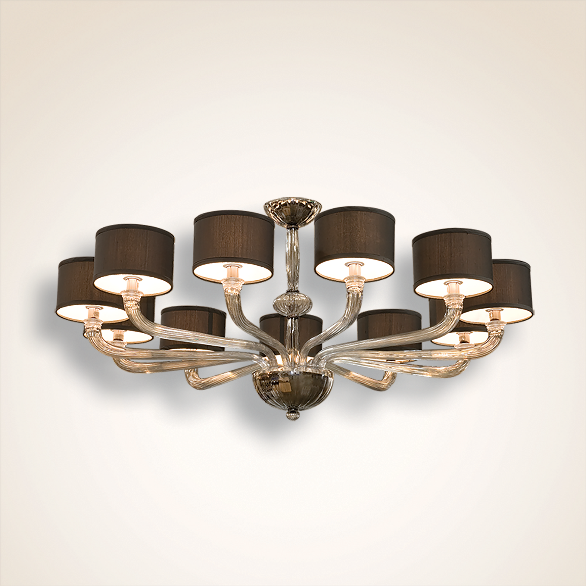 FINISH Polished Chrome with Steel Murano Glass and Black Linen Shades