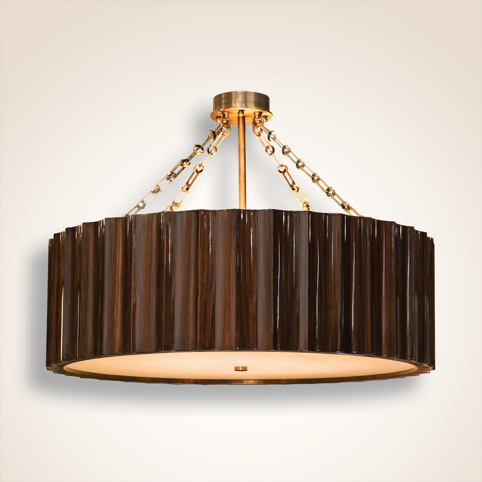 FINISH Plated Antique Bronze with High Gloss Piano Finish, Macassar Ebony Veneer and Frosted Glass Diffuser