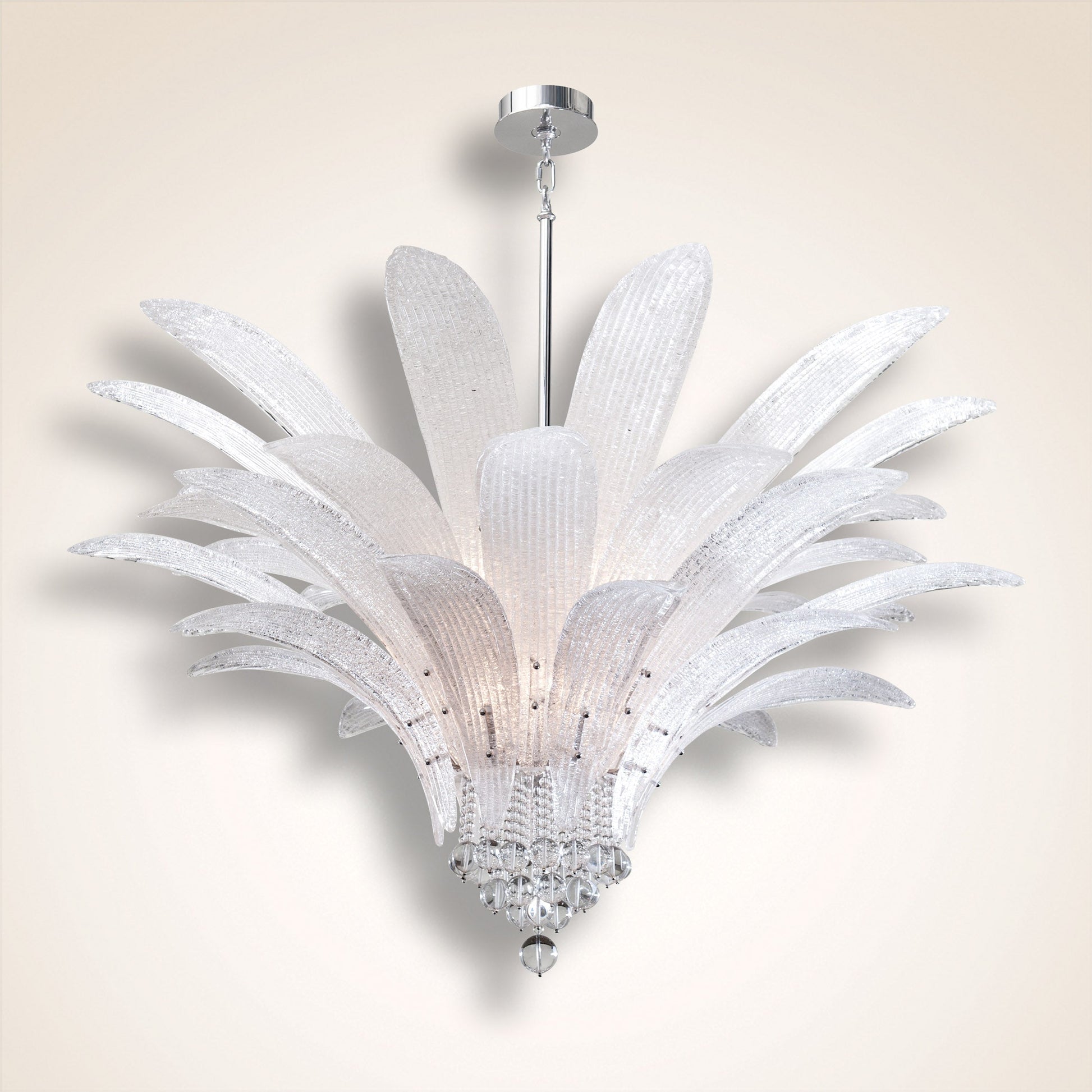 FINISH Metal: Plated Polished Nickel; Glass Petals: Clear Cast Piastra with Clear Frit; Glass Balls: Clear Smooth