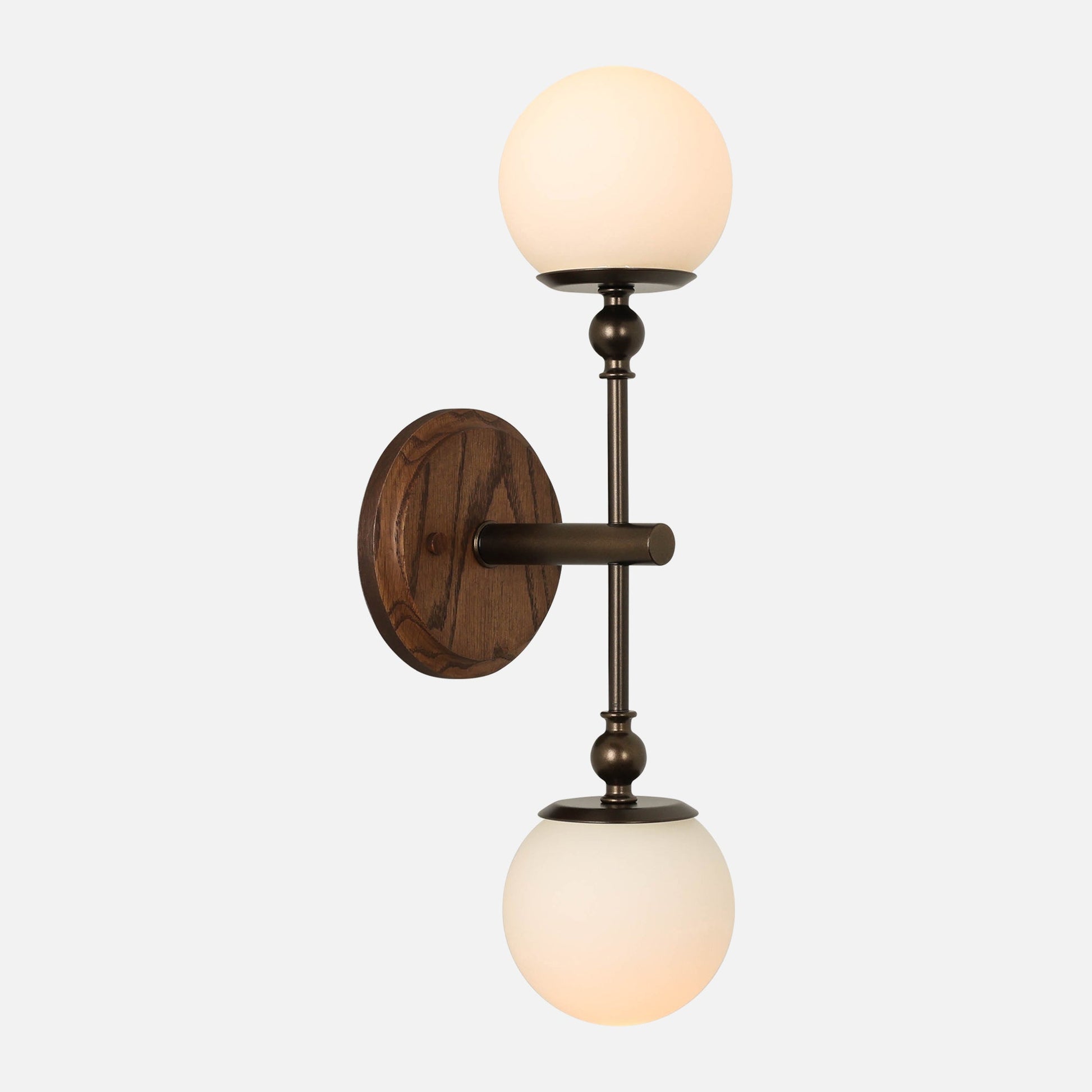 A charming wall lamp featuring a duo of petite glass globes to softly diffuse light. Its elegant profile makes it perfect for spaces ranging from traditional to modern.