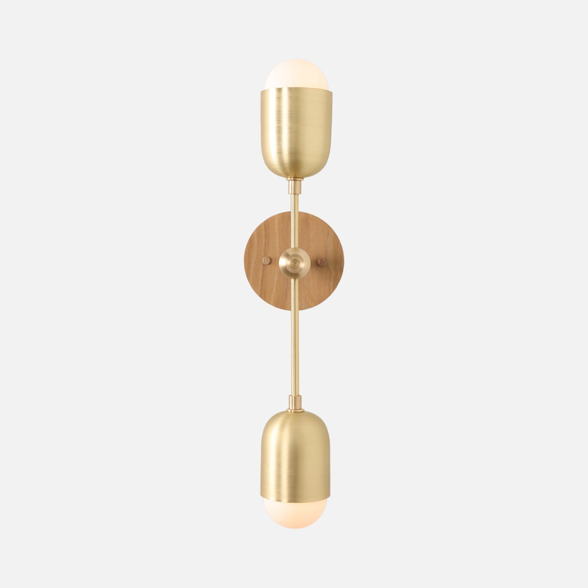 A well rounded wall sconce featuring a duo of petite, pebble shaped metal shades. Choose from our pallet of material combinations to customize the overall look and feel.