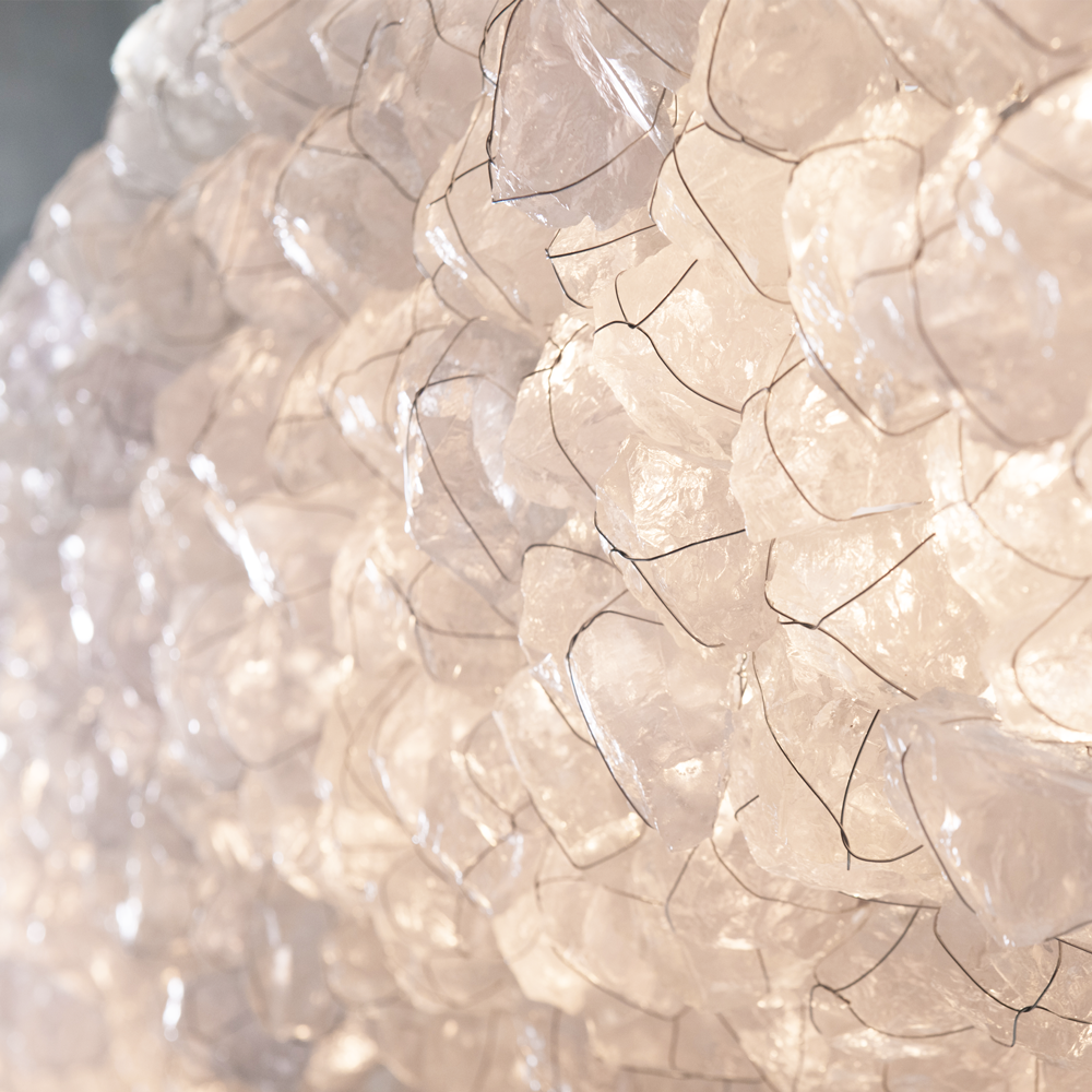 FINISH Polished Stainless Steel with Raw Natural Milky Rock Crystal