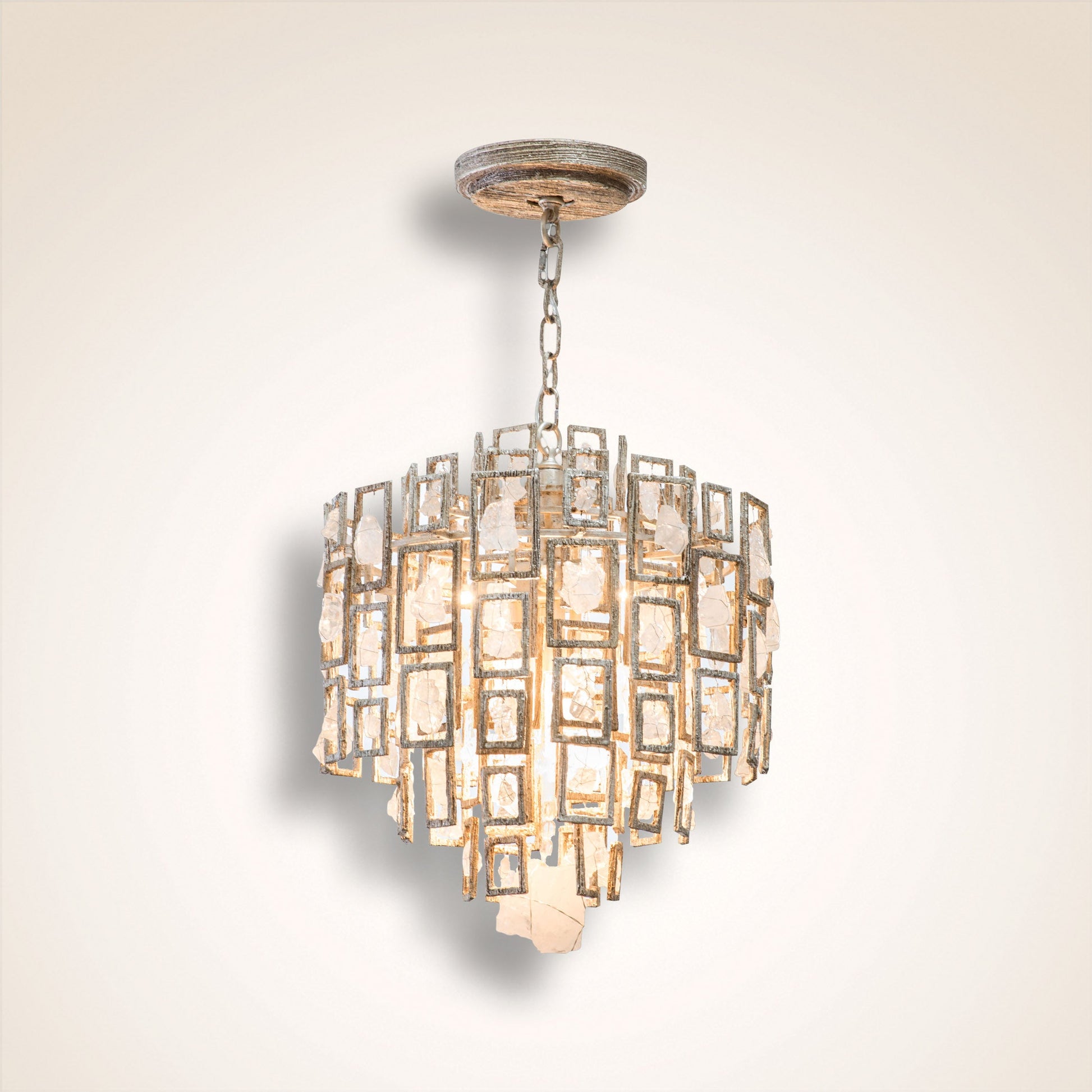 FINISH Distressed Lightly Antiqued White Gold Leaf with Raw Natural Milky Rock Crystal