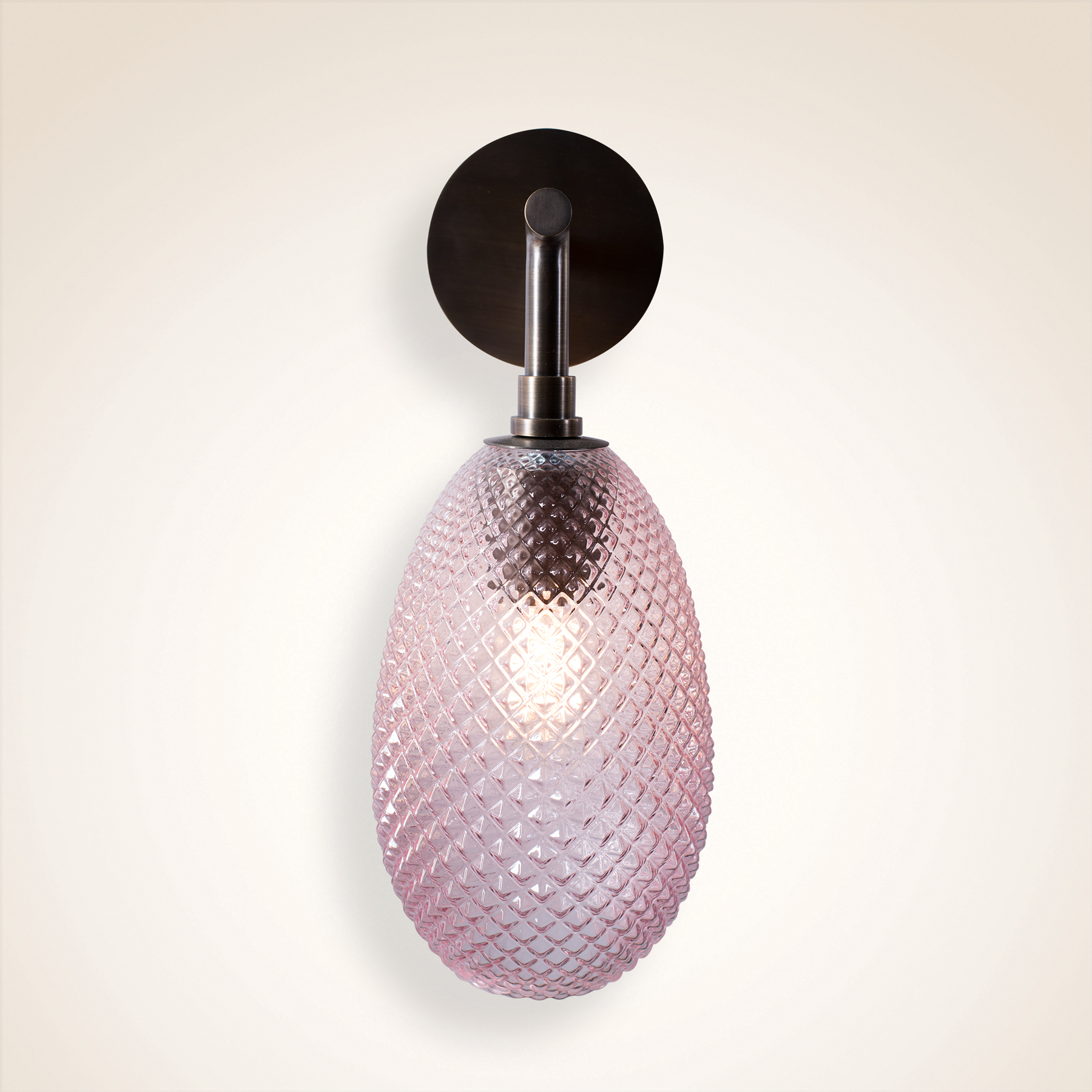 FINISH Plated Antique Bronze Pink Jeweled Blown Glass Shade
