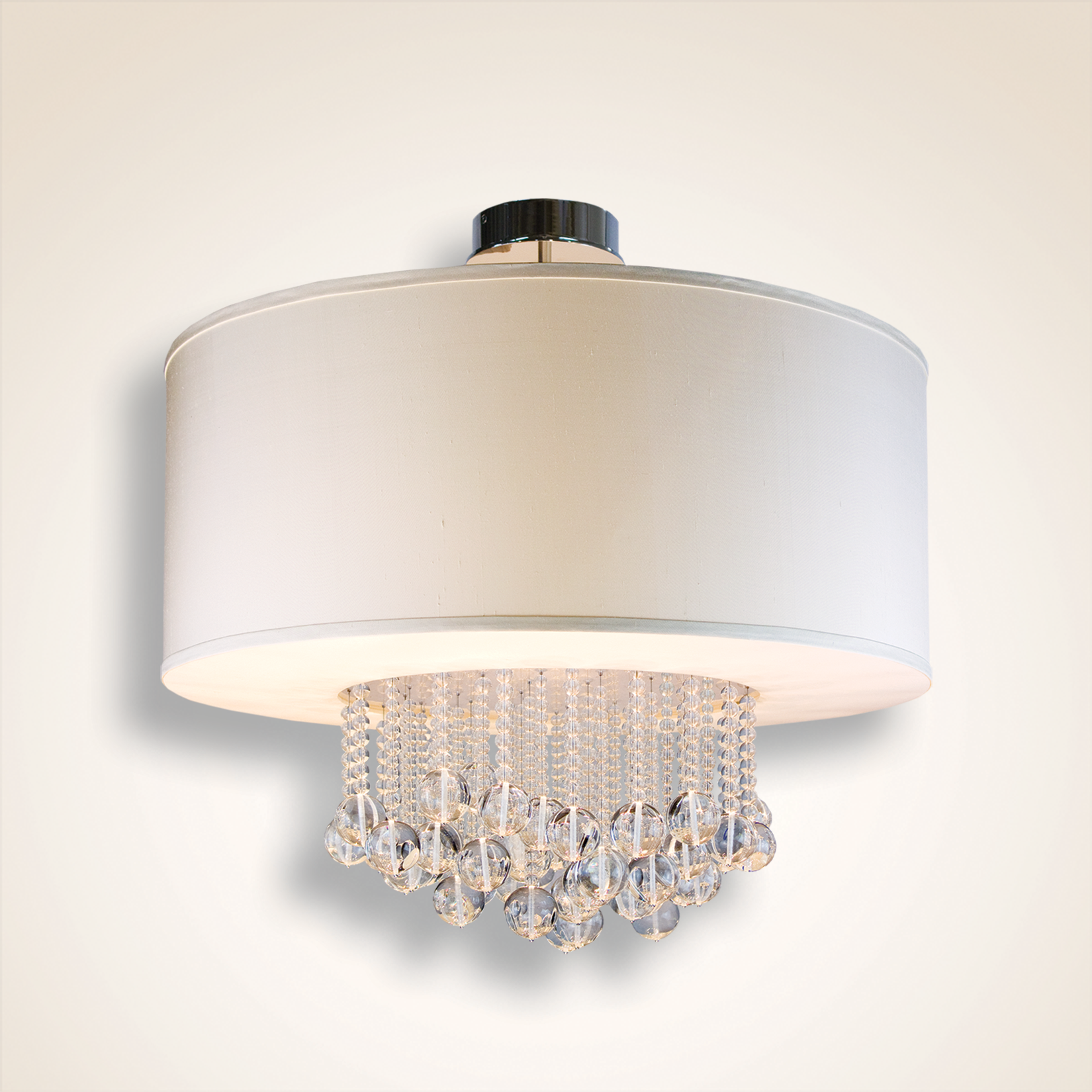 FINISH Plated Polished Nickel with Smooth Crystal Bead Detail and Fabric Shade