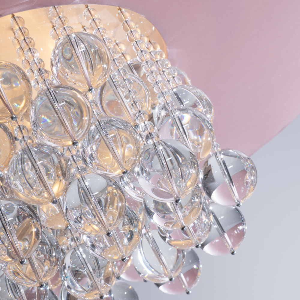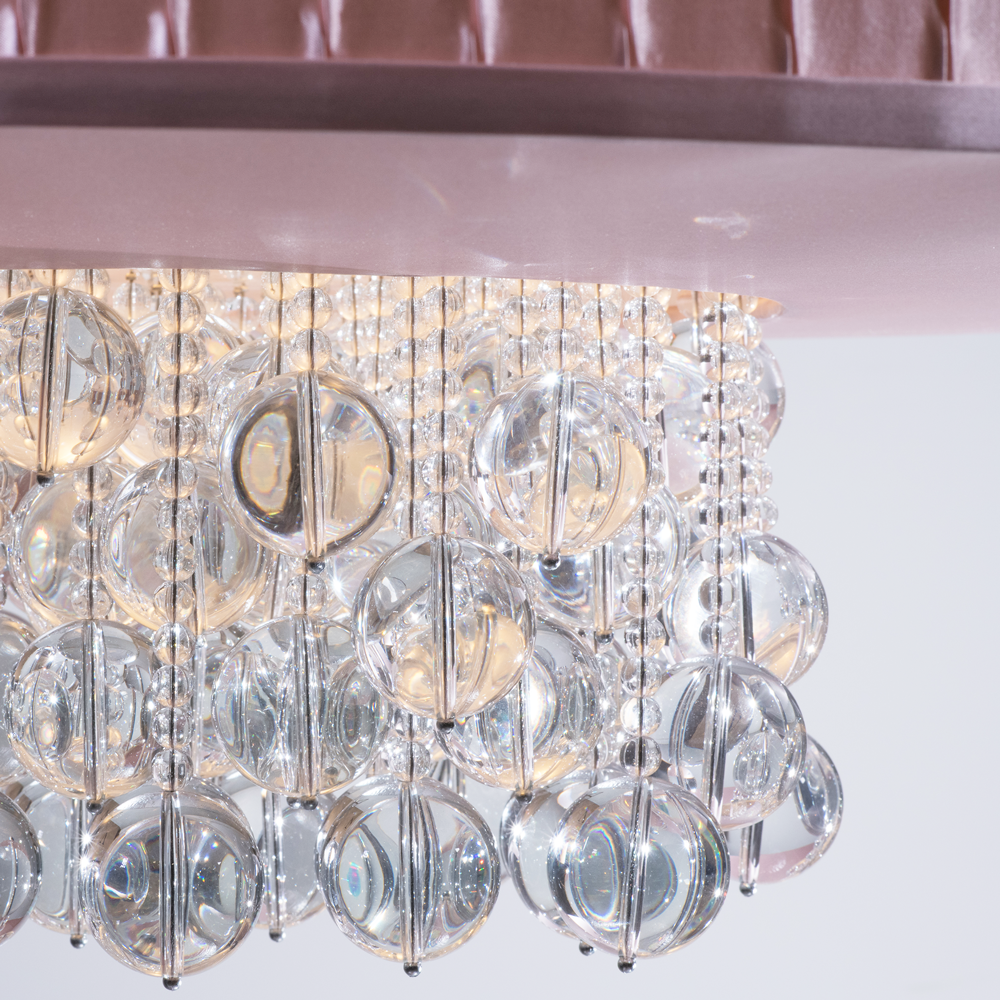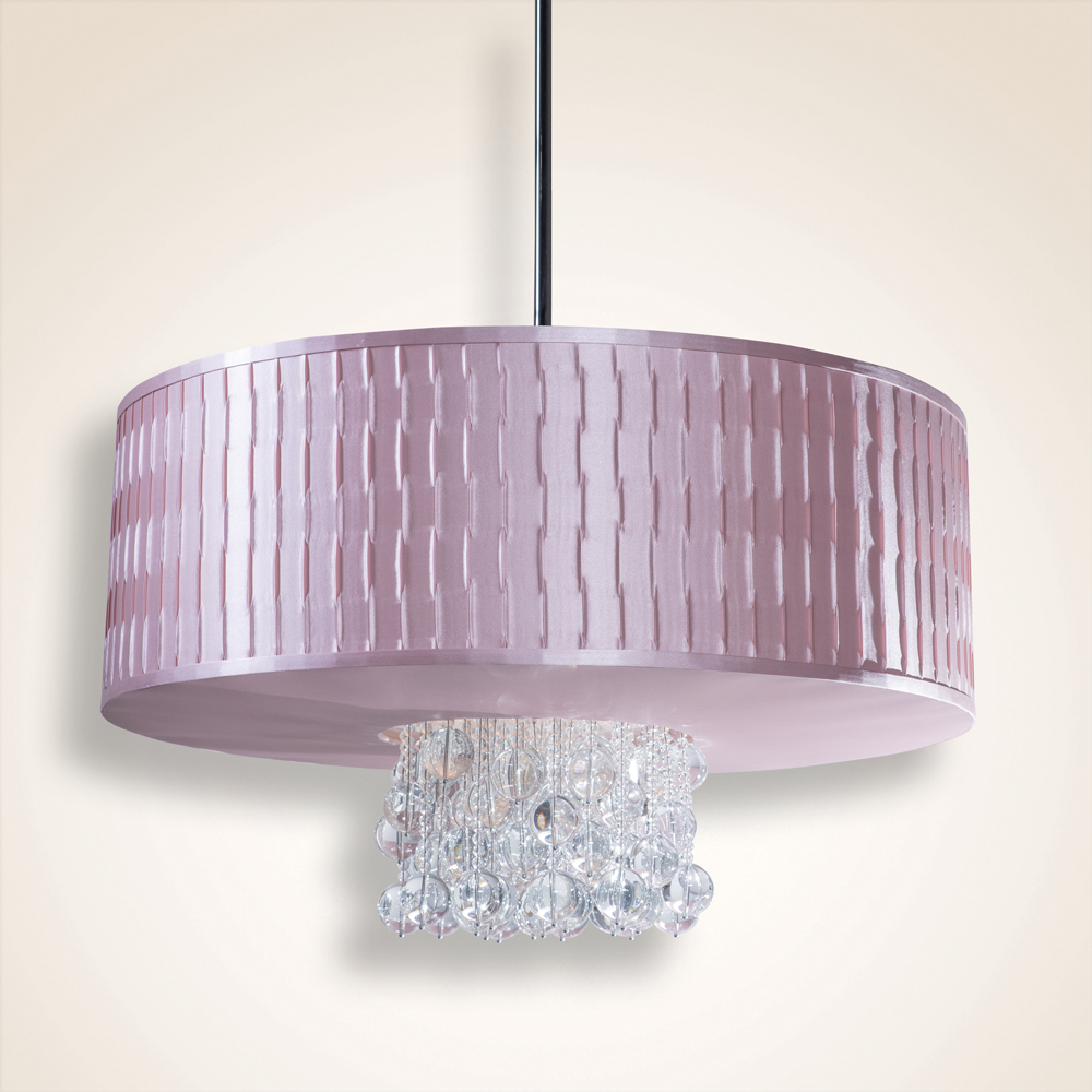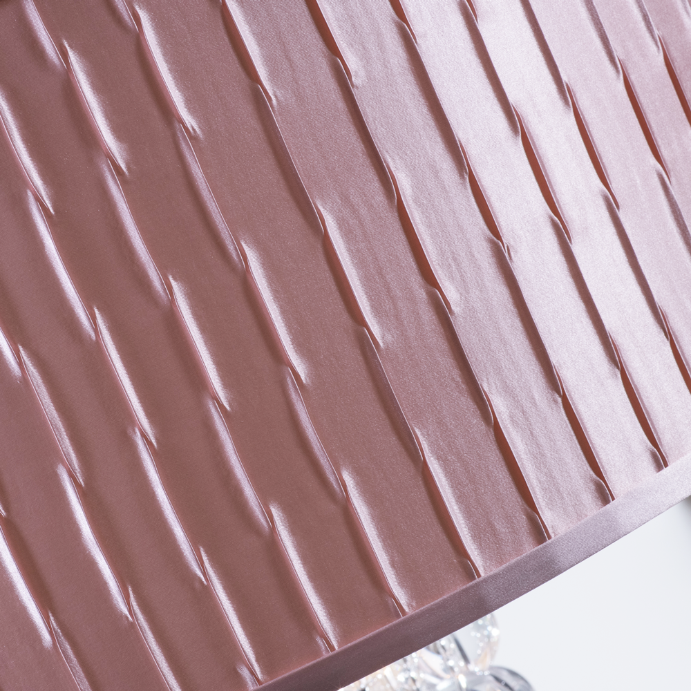 FINISH Plated Polished Nickel, Smooth Crystal Bead and Pink Fabric Shade with Texture