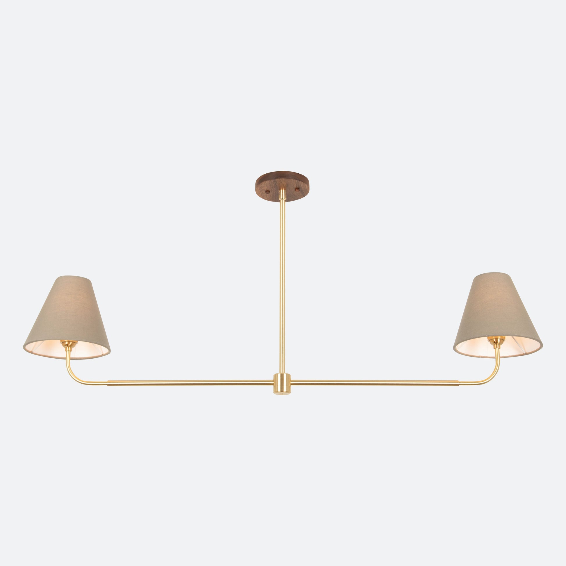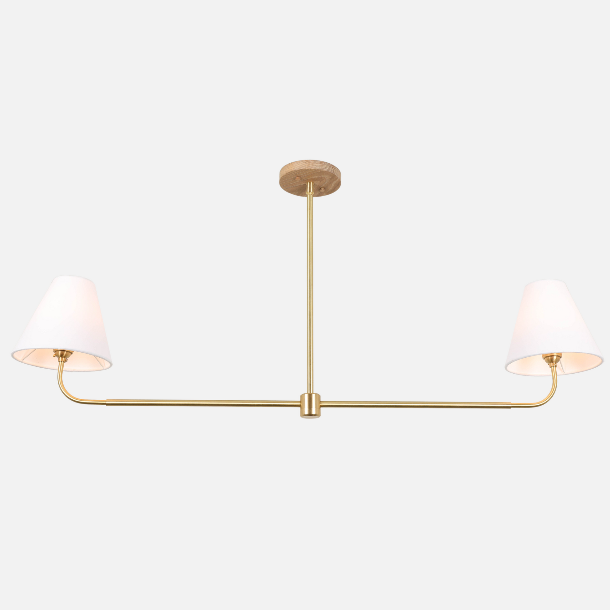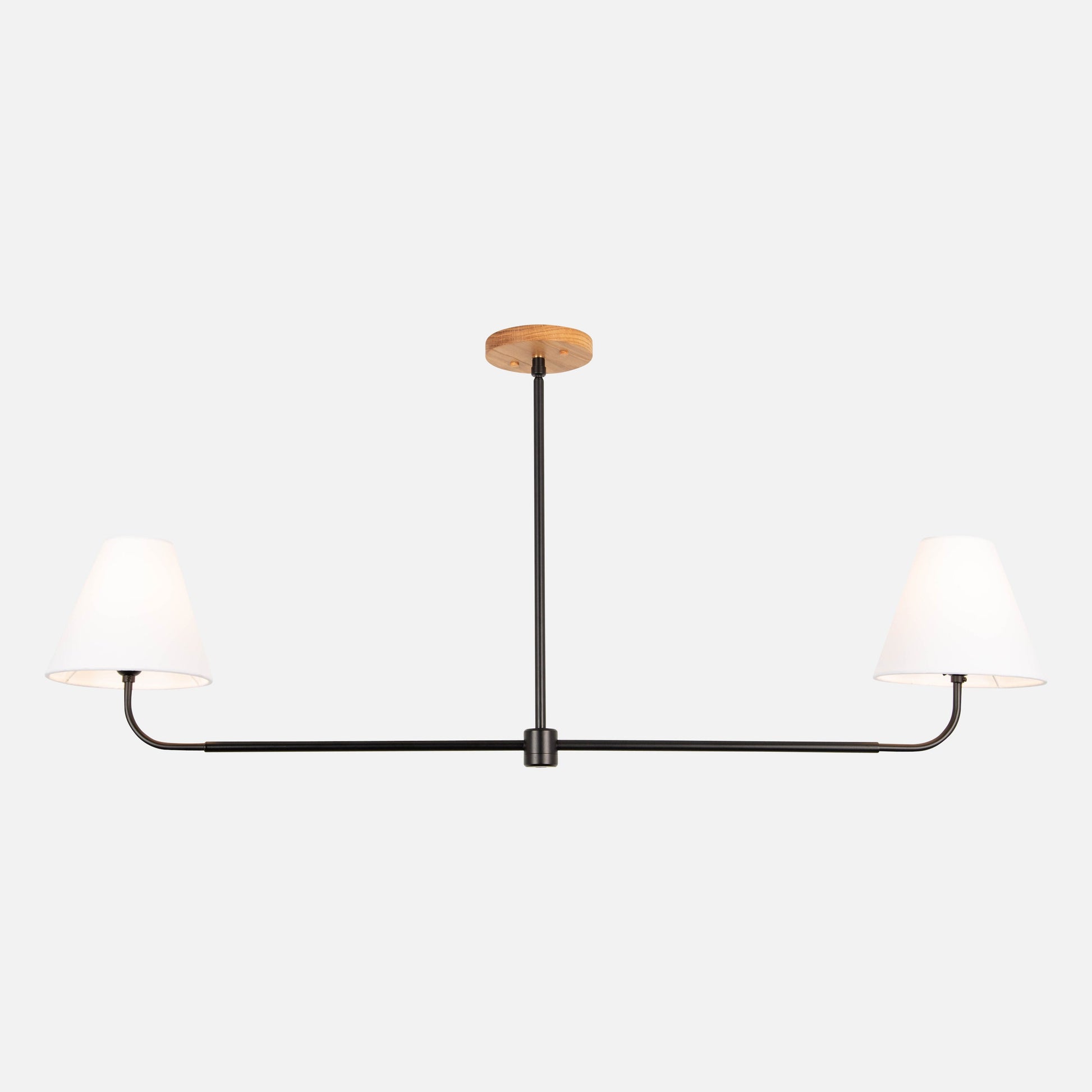 A simple yet elegant chandelier featuring a duo of crisp linen shades and slim profile suitable for kitchens, dining rooms and bedrooms alike. Choose from our pallet of material combinations for infinitely versatile look and feel