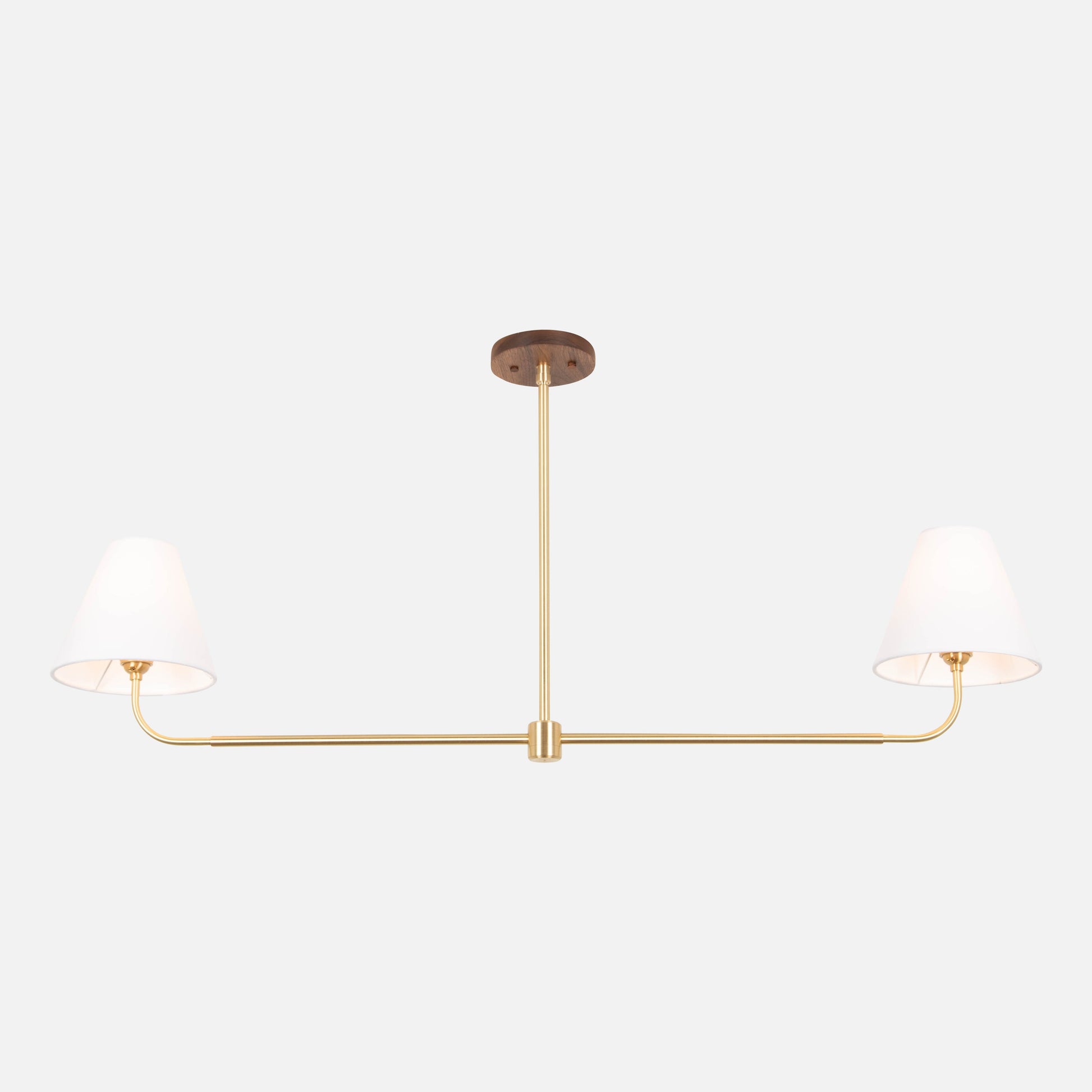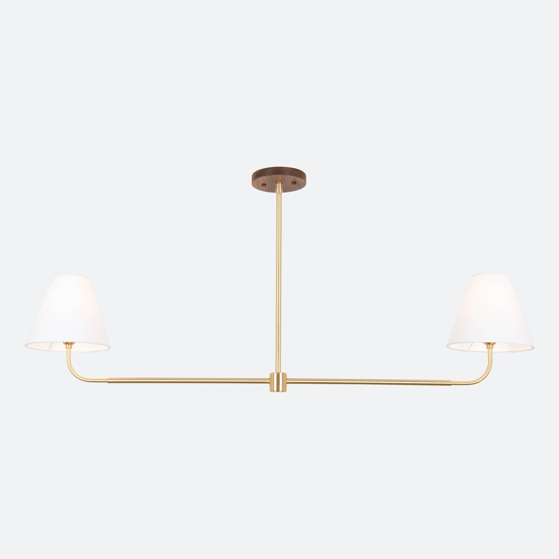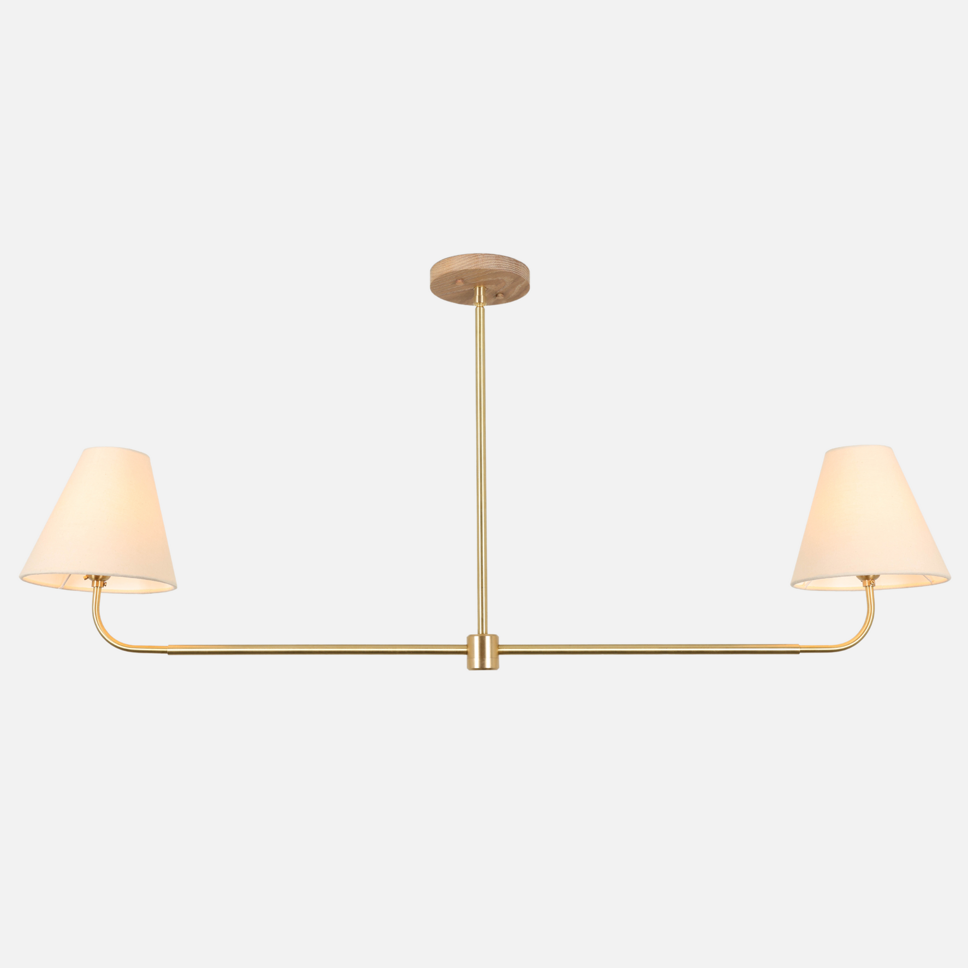 A simple yet elegant chandelier featuring a duo of crisp linen shades and slim profile suitable for kitchens, dining rooms and bedrooms alike. Choose from our pallet of material combinations for infinitely versatile look and feel