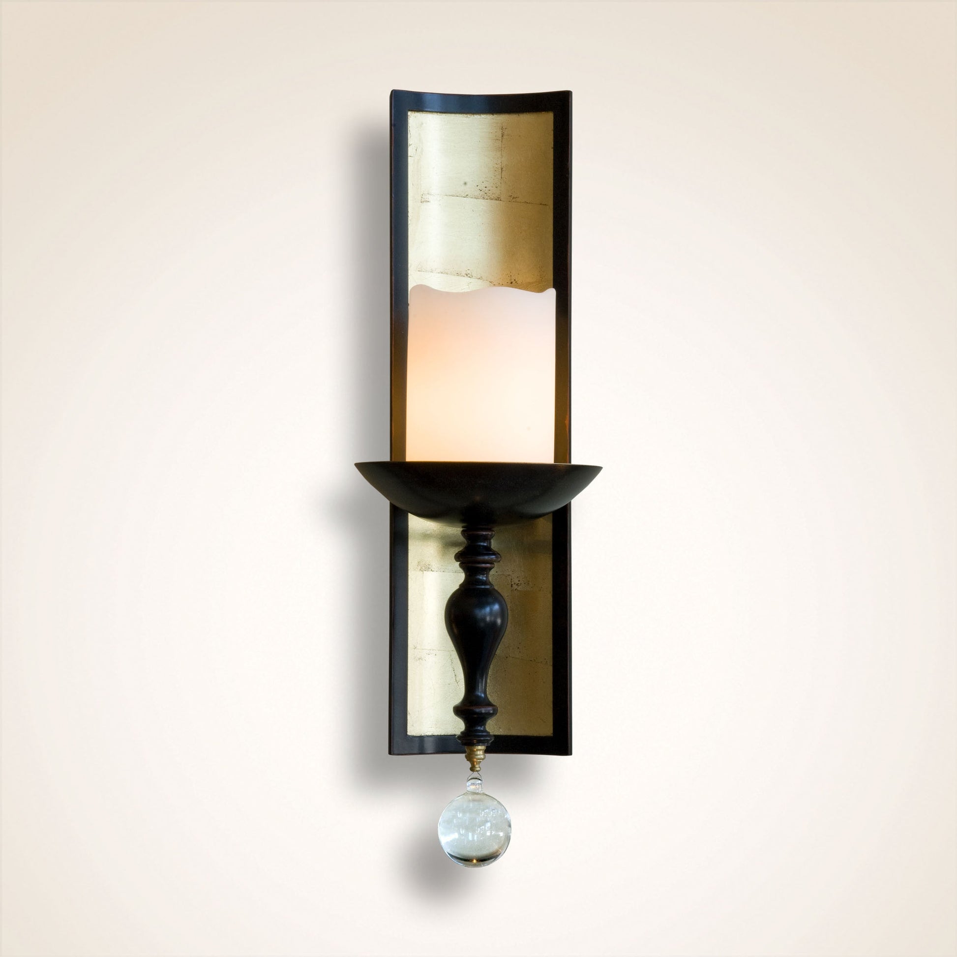 FINISH Painted Terra Cotta Black with Gold Leaf Reflector and Glass Ball Detail