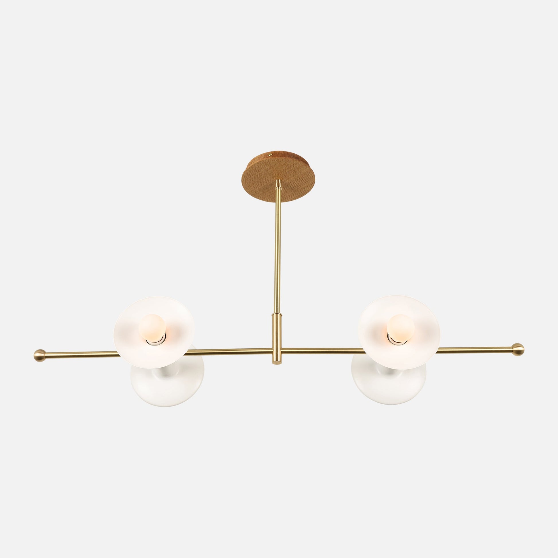 This light features 4, spun metal shades and a striking wooden backplate. Named after a beautiful island in the Carolinas, the Sullivan Chandelier was designed and built in our studio in SC.