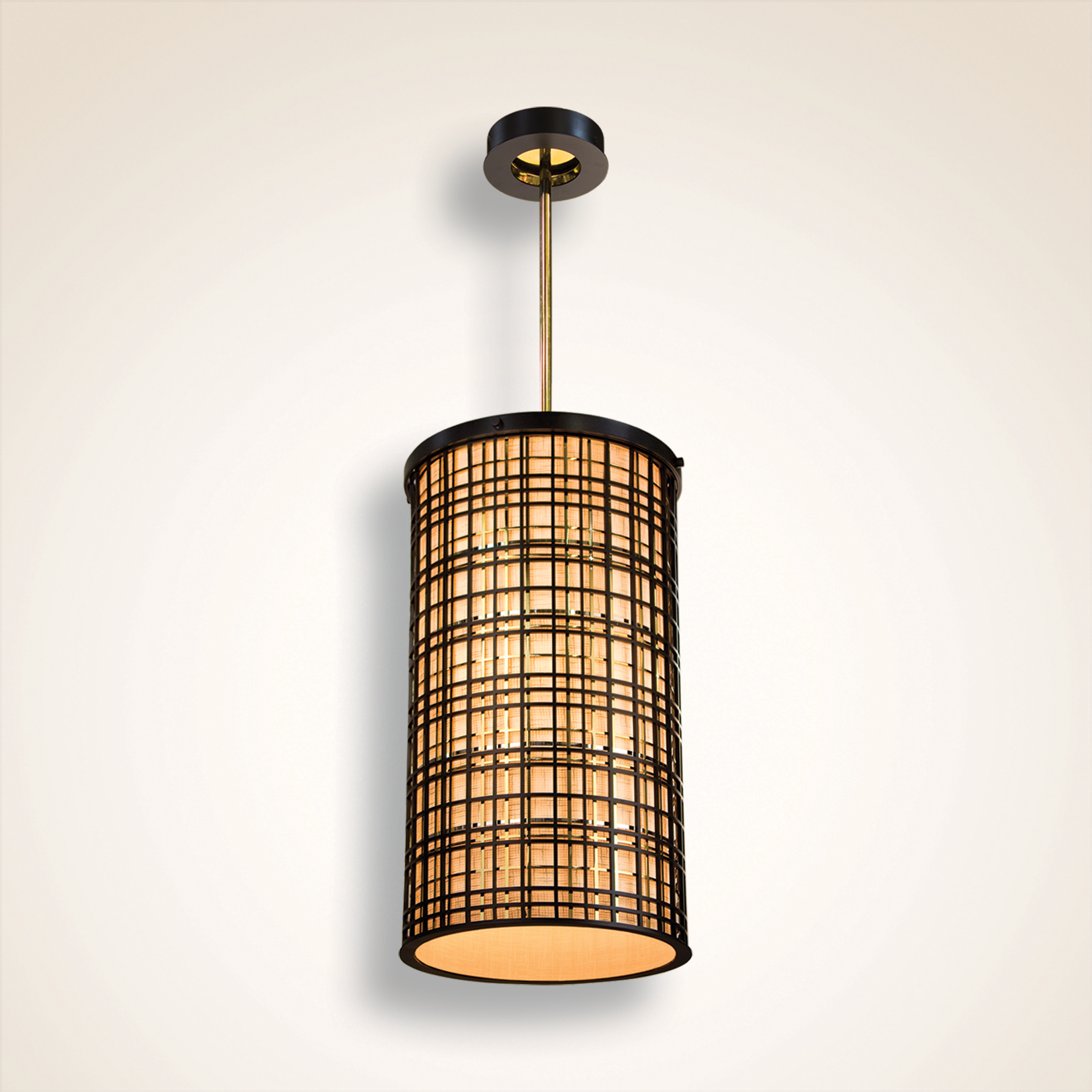 FINISH Acid Blackened Steel with Polished Brass and Polished Nickel Accent and Optional Fabric Shade
