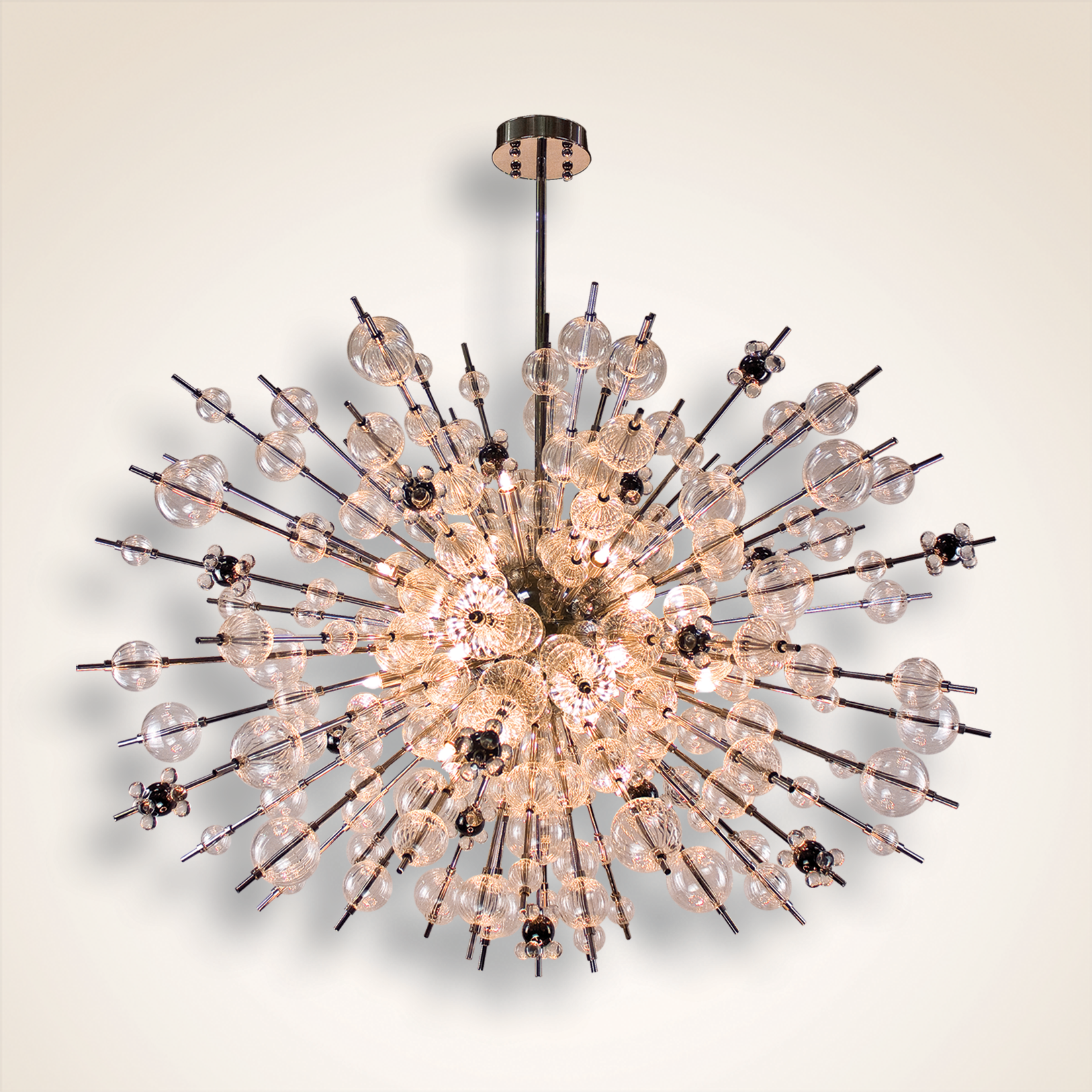 FINISH Plated Polished Nickel with Metal Contrast and Ribbed Glass Balls