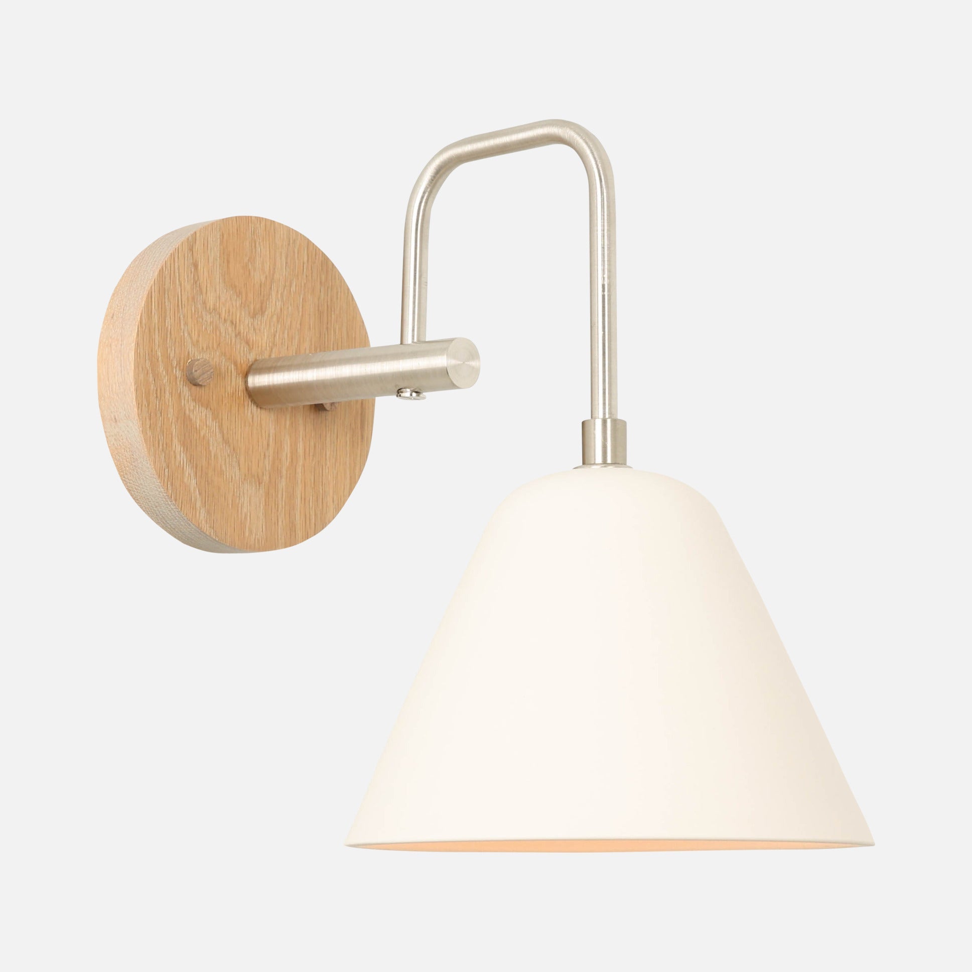 An angular arm, artisan-made porcelain shade and wooden canopy combine to create this versatile wall sconce. Choose your wood, metal and porcelain finish to transform the overall look.